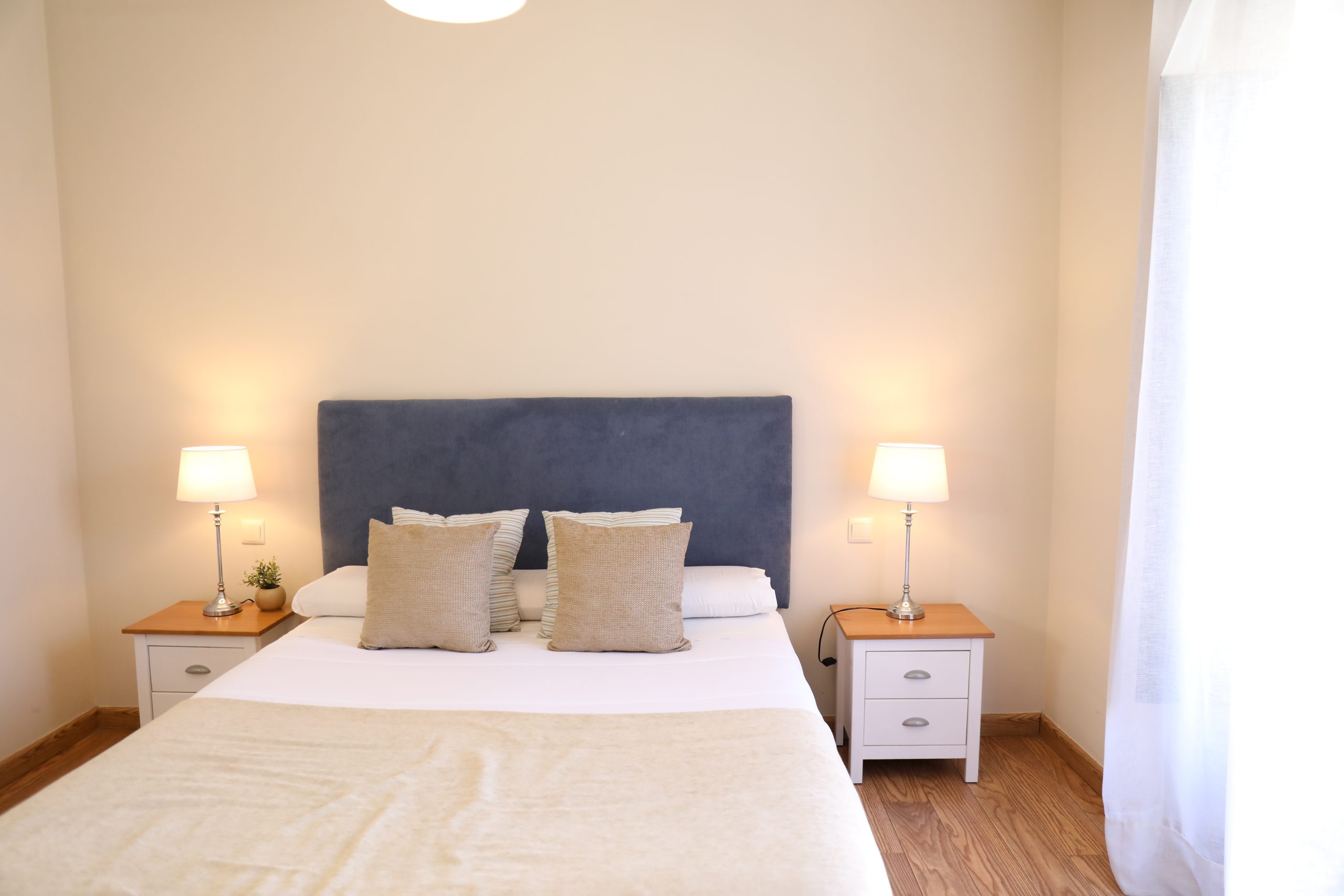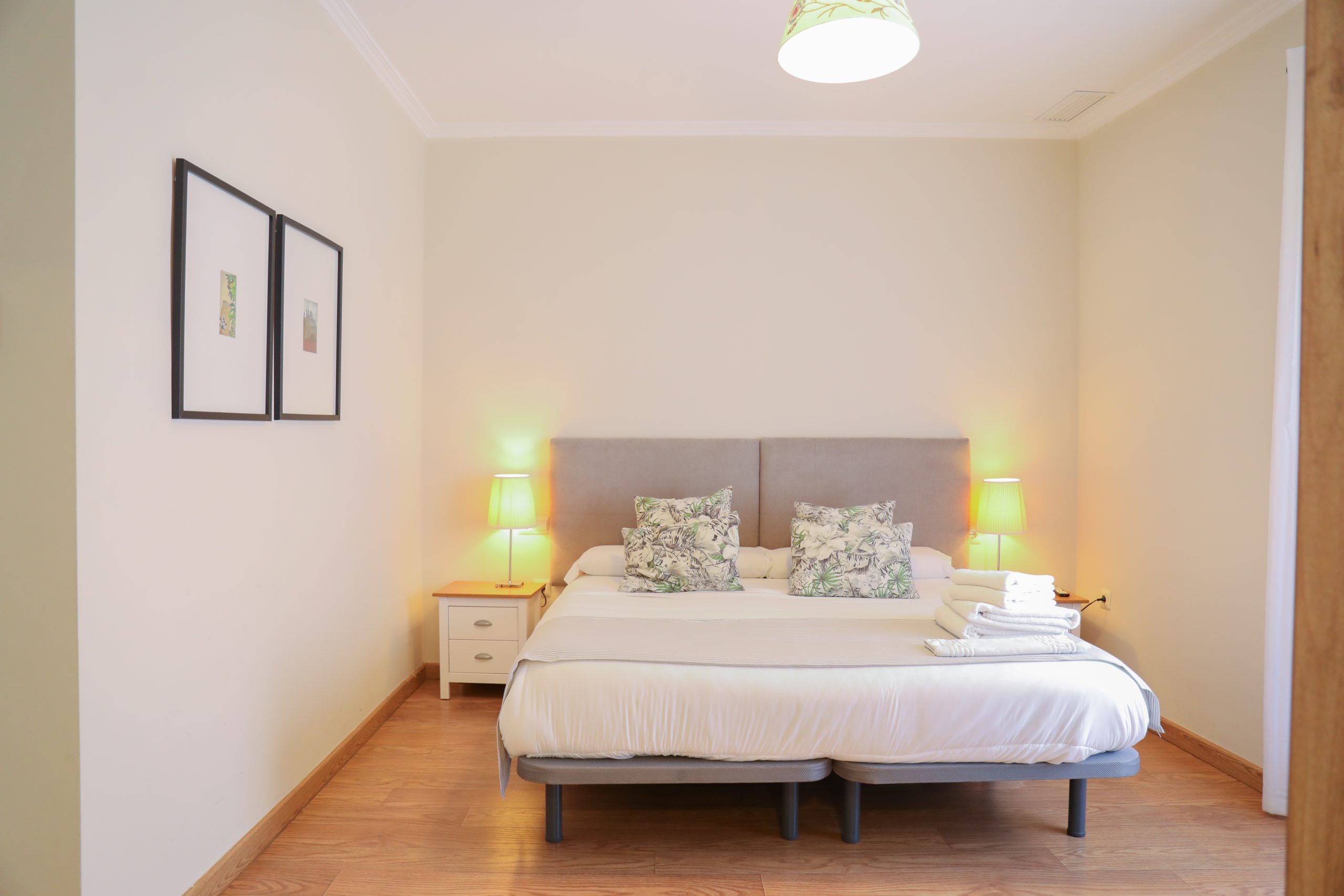 suelo de madera, la ropa de cama confortable y la calidez del diseño crean un ambiente acogedor y relajante.